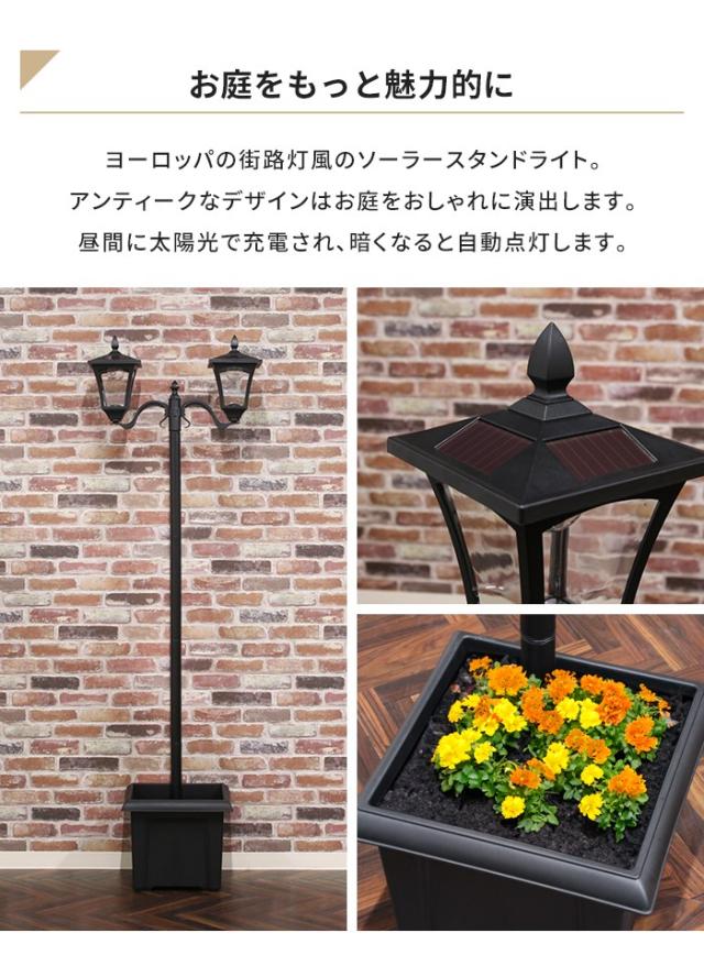 | ガーデンライト ソーラーライト 2灯 プランター付き 太陽光発電 屋外照明 照明器具 LEDライト 配線不要 ガーデン用品 街路灯 LEDソーラースタンドライト LEDガーデンライト 防犯ライト 庭ライト 太陽光充電 植木鉢付き 置き型 自立 スタンド式 おしゃれ ライトアップ 庭 ガーデン エクステリア |