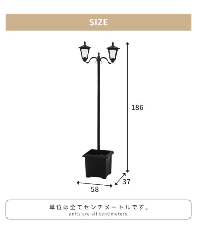 | 【プランター付きLEDソーラースタンドライト】 ● 1灯 ● 2灯 ● 3灯 ※このページは[プランター付きLEDソーラースタンドライト 2灯]を販売しております。 |