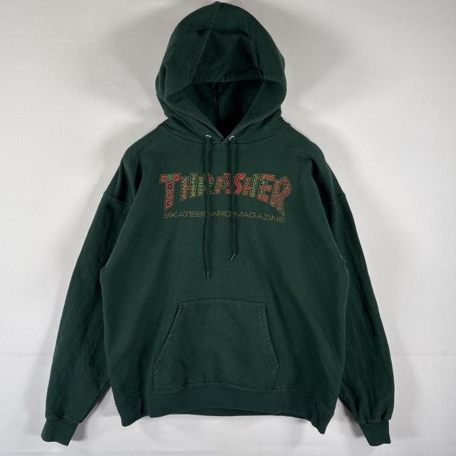 古着 スラッシャー THRASHER パーカー スウェット フーディ スケーター プルオーバー ビッグロゴプリント ストリート M グリーン