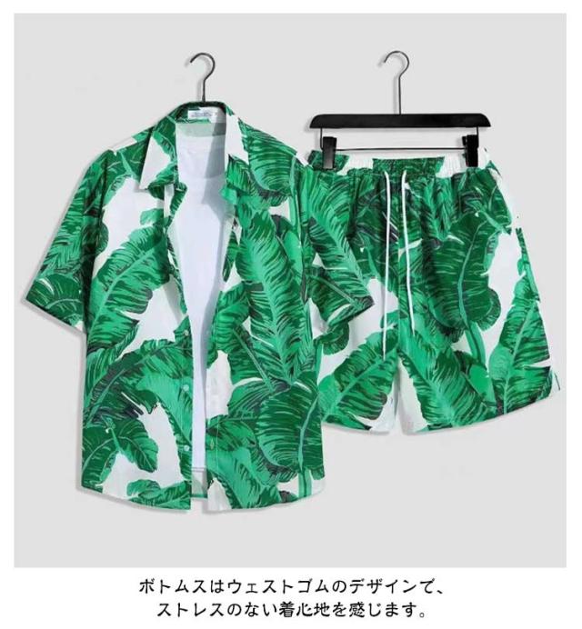 シャツ カジュアルシャツ セットアップ アロハシャツ+短パン 海辺 夏 総柄 花柄 ハーフパンツ 上下セット ショートパンツ 2点セット フラワー トップス 半ズボン メンズ ビーチウェア 涼しい 吸汗速乾 M-3XL 夏服 リゾート アロハシャツ+短パン サーフ系