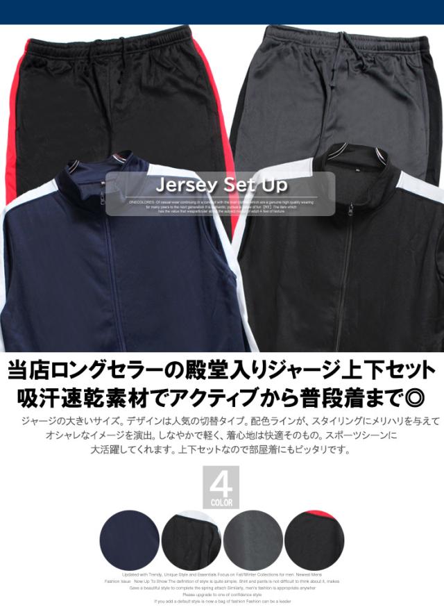 | 説明 | ジャージの大きいサイズ。デザインは人気の切替タイプ。 配色ラインが、スタイリングにメリハリを与えてオシャレなイメージを演出。 しなやかで軽く、着心地は快適そのもの。 スポーツシーンに大活躍してくれます。 上下セットなので部屋着にもピッタリです。 |