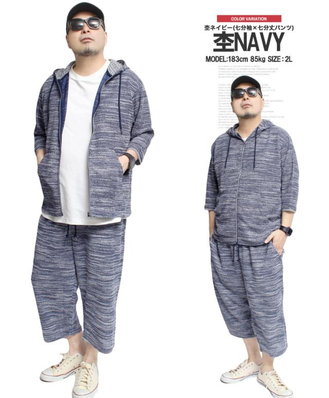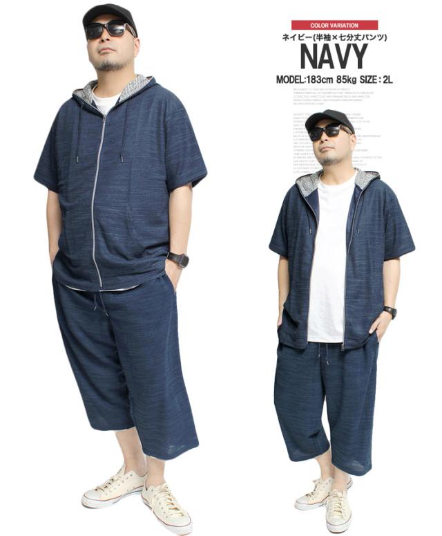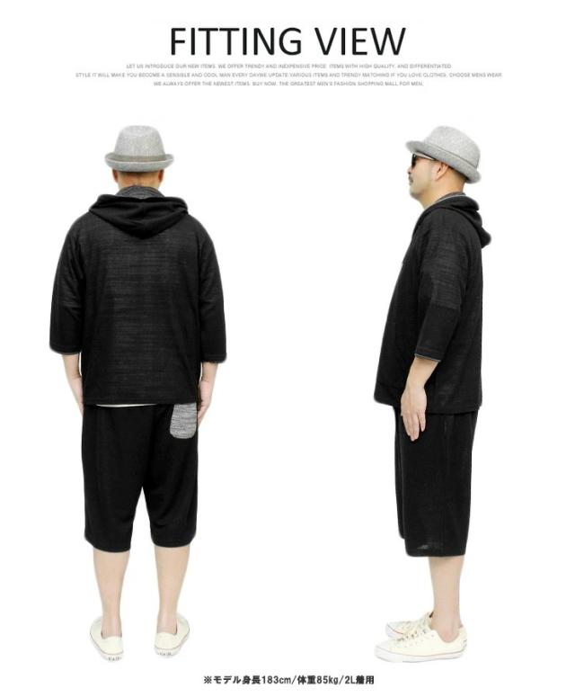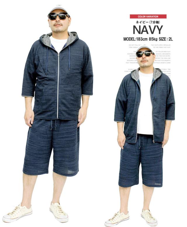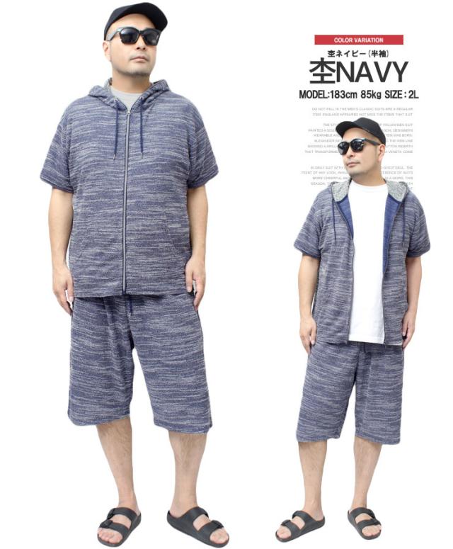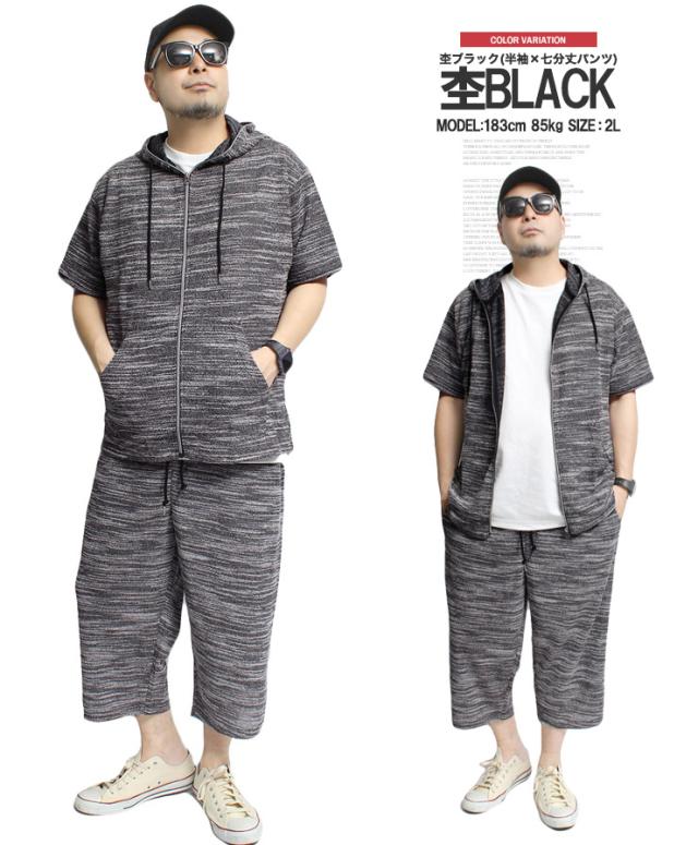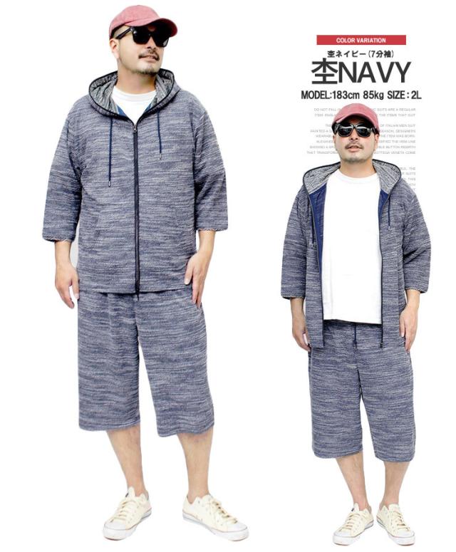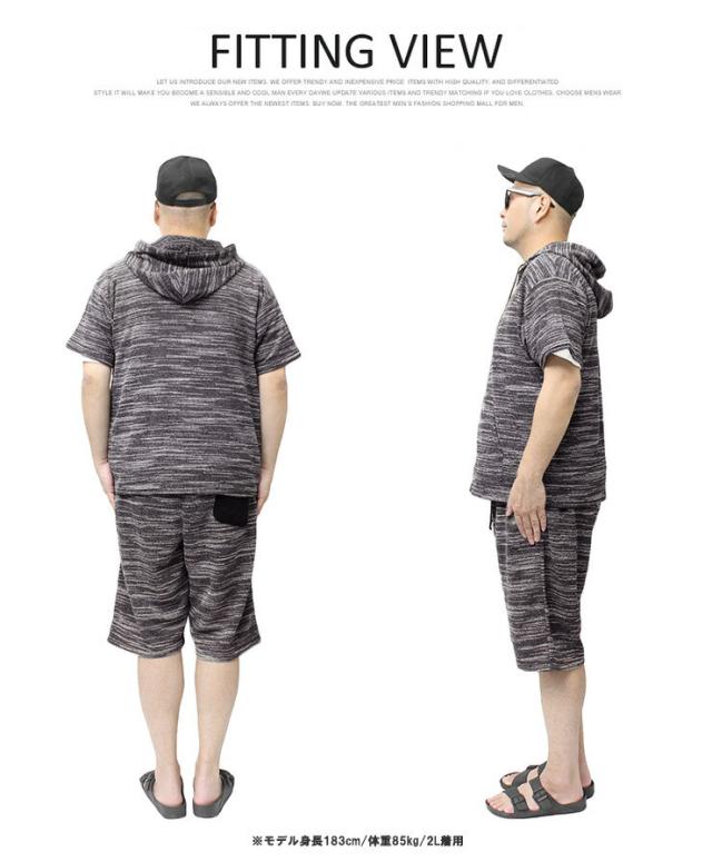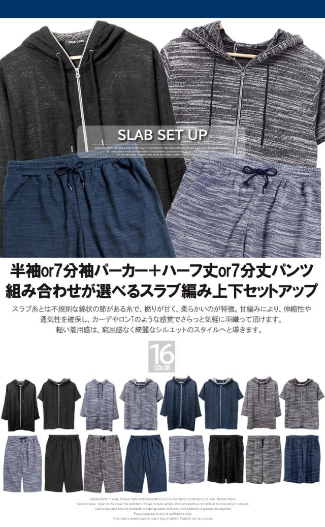 送料無料 セットアップ メンズ 大きいサイズ メンズセットアップ スラブ サマーニット 薄手 ジャガード柄 半袖 7分袖 パーカー ショートパンツ ジャージ 上下 ルームウェア 部屋着 ハーフパンツ ショーツ 短パン カーディガン ブルゾン ワークマン