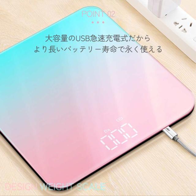 【送料無料】 体重計 デジタル表示 ヘルスメーター ボディスケール デジタル 体重 薄型 コンパクト 高性能 充電式 USB 急速充電 長く使える かわいい おしゃれ シンプル 軽量 プレゼント ギフト 体組織 軽量 高性能 基礎代謝 内臓脂肪 高性能 センサー 気温 インテリア