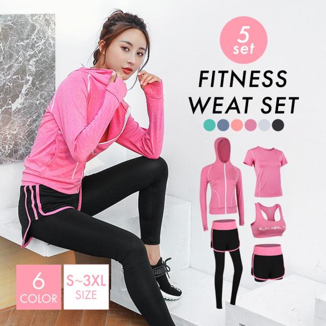 【送料無料】 スポーツウェア セット レディース 上下 レギンス 5点セット セットアップ スポーツウェアセット スポーツウェア ヨガウェア ヨガ ウェア 上下セット トレーニングウェア ランニングウェア フィットネス
