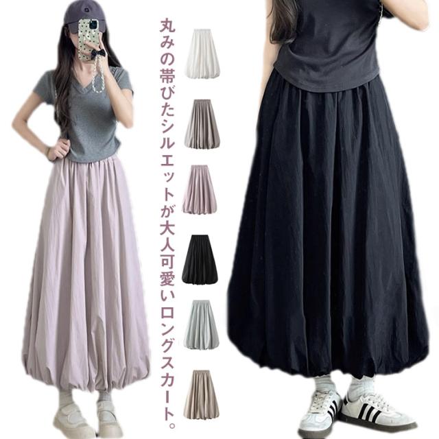 マキシ丈 体型カバー 夏 大人 コクーンスカート スカート ロング バルーン ロングスカート Aライン スカート 大人 ふんわり バルーンスカート カジュアル かわいい 着痩せ 通勤 無地