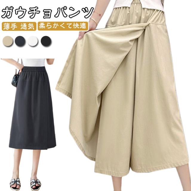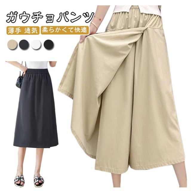 レディース スカートパンツ 袴パンツ 薄手 体型カバー 夏用 ゆったり 通気 ワイドパンツ 涼しい 柔らかくて快適 ハイウエスト レディース 大きい 無地 体型カバー