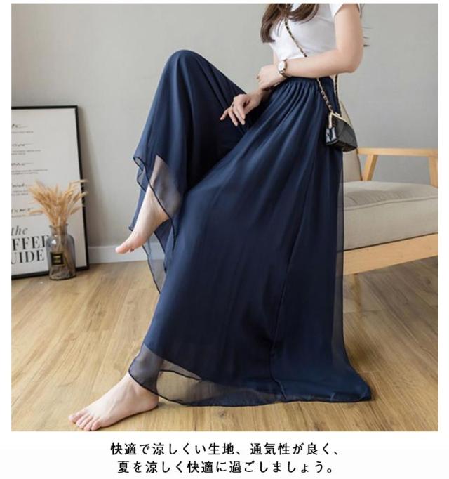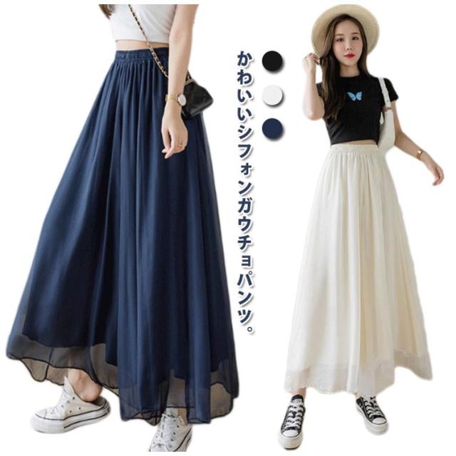 送料無料 イージーパンツ スカーチョ パンツ ガウチョパンツ シフォン きれいめ スカンツ シフォンパンツ ガウチョ ワイドパンツ スカートみたい 大きいサイズ 体型カバー レディース 送料無料 Aライン M L XL 2XL 3XL