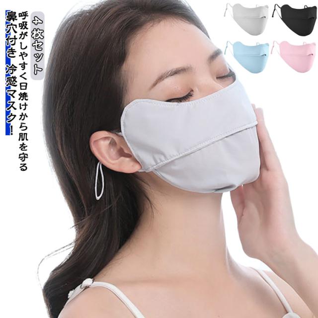マスク 4枚セット 呼吸穴 大きいサイズ 洗える uvカット 接触冷感 フェイスマスク 鼻穴付き 大きめ マスク 日焼け 4枚セット 冷感 紫外線防止 春 夏用 涼しい ひんやり 小顔マスク レディース メンズ 大人用 フェイスカバー uv スポーツ アウトドア オシャレ