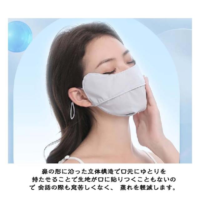 | 呼吸がしやすく日焼けから肌を守る鼻穴付き 冷感マスク! 肌に優しいアイスシルクを採用。軽やかで滑らかな触感が特徴で、通気性と保湿性に優れ、長時間の使用でも肌にストレスを与えません。 鼻部分に呼吸穴を設けることで吐いた息をスムーズに排出し、新鮮な空気を 取り入れやすくなっています。 鼻の形に沿った立体構造で口元にゆとりを持たせることで生地が口に貼りつくこともないので 会話の際も息苦しくなく、蒸れを軽減します。 日焼け止めに頼らなくてもサッと着けるだけで簡単に紫外線カットができます。 日常使いをはじめ、スポーツやお仕事などでも安心してお使いいただけます。 生地にはUVカット性を持つ素材を使用しているので何度洗濯してもUV効果が持続します。 | |