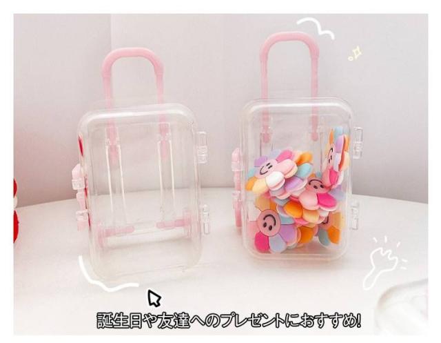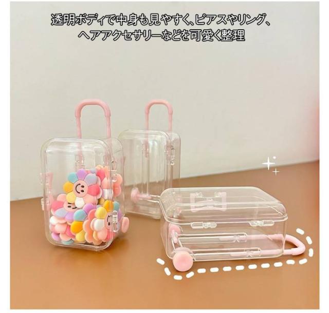 | 旅行気分を楽しめる!超ミニサイズのスーツケース型アクセサリーケースが登場 伸縮式のハンドル、実際に動くキャスター付きで、まるで本物のキャリーケースのよう! 透明ボディで中身も見やすく、ピアスやリング、ヘアアクセサリーなどを可愛く整理♪ 誕生日や友達へのプレゼントにおすすめ! | |