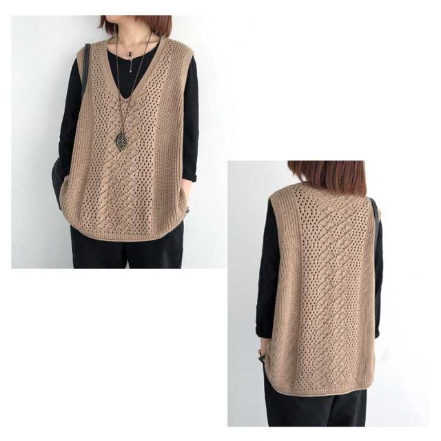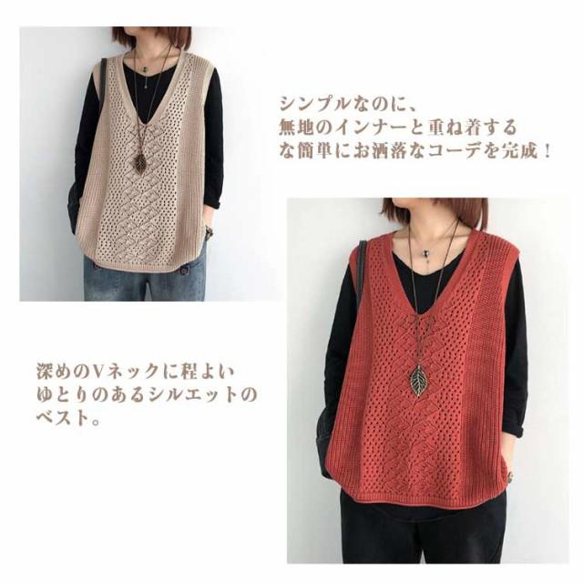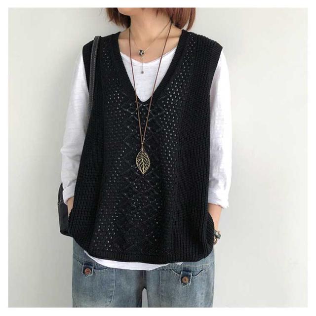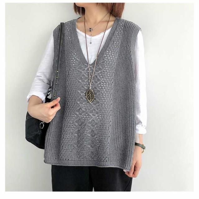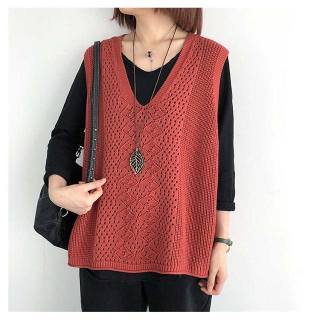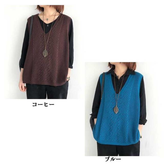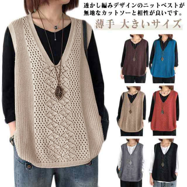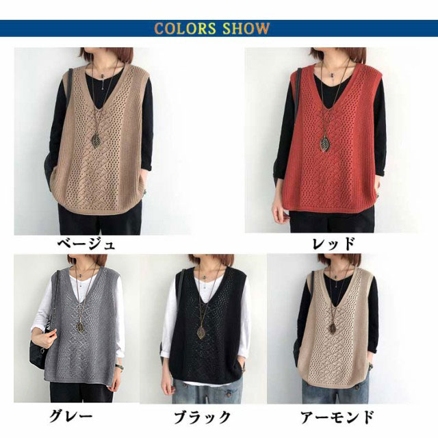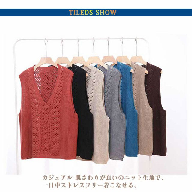 薄手 春 サマーベスト Vネック 秋 ベスト ニットベスト レディース ジレ 夏 透かし編み 大きいサイズ トップス ニットベスト ニット ベスト ノースリーブ 無地 レイヤード 重ね着 カジュアル 大人可愛い