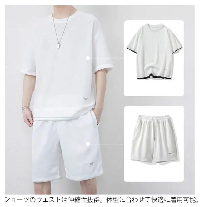 夏 セットアップ ワッフル編み 吸汗 セットアップ メンズ 半袖 ハーフパンツ 上下セット スポーツウェア ジャージ ルームウェア ナイトウェア 通勤 部屋着 通気性 快適 肌触り 柔らかい ランニング