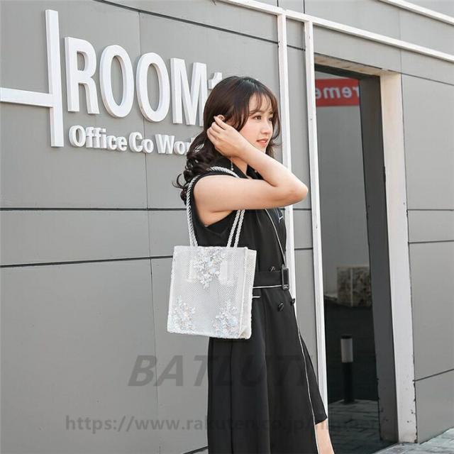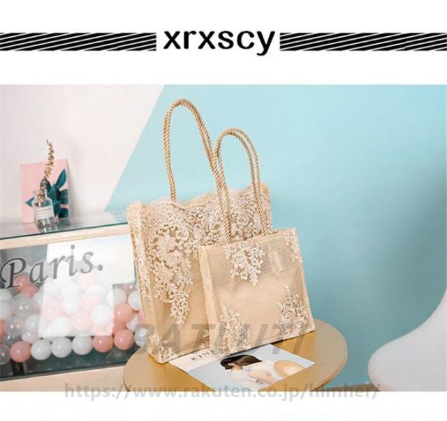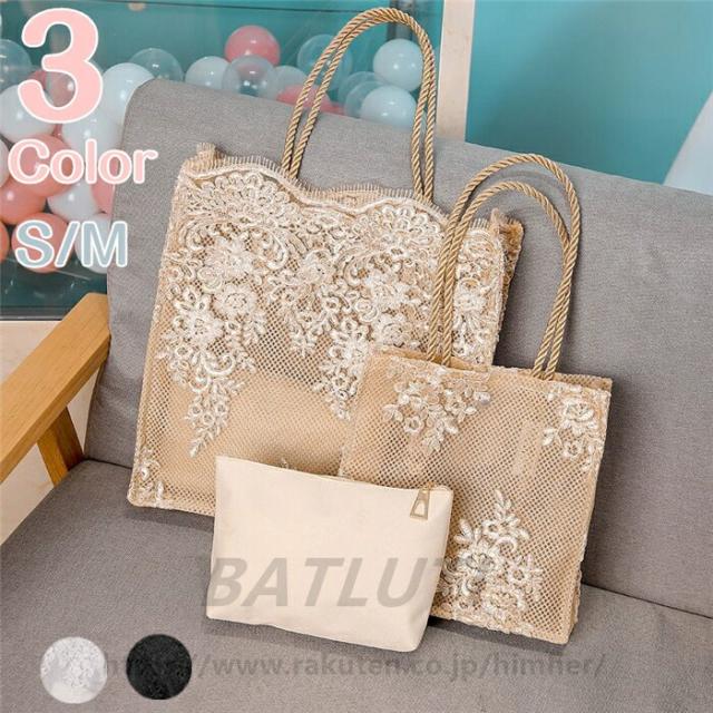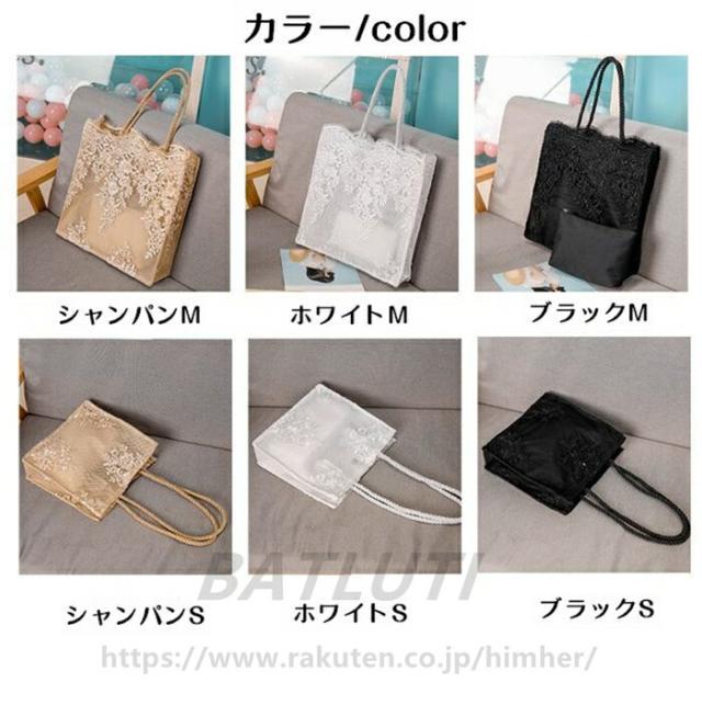 トートバッグ レース エコバッグ 軽量 バッグ レディースバッグ トートバッグ 早い者勝ち シャンパン ホワイト ブラック S M