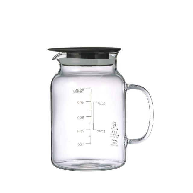 【商品詳細】 本体サイズ:幅12.5×奥9.0×高14.0cm、口径7.3cm、実用容量500mL、本体材質:本体/耐熱ガラス、フタ/ポリプロピレン、シリ コーンゴム、日本製