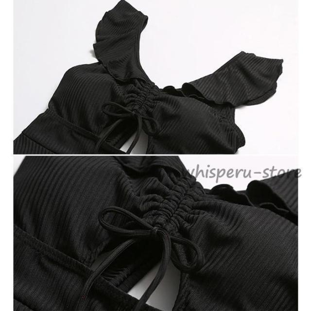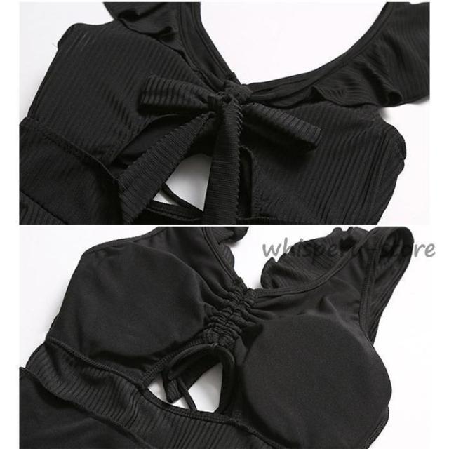 ワンピース水着 レディース 体型カバー 黒 ワイン フレア フリル サロペット水着 オールインワン 無地 夏 海 海水浴 女性用 スイムウェア
