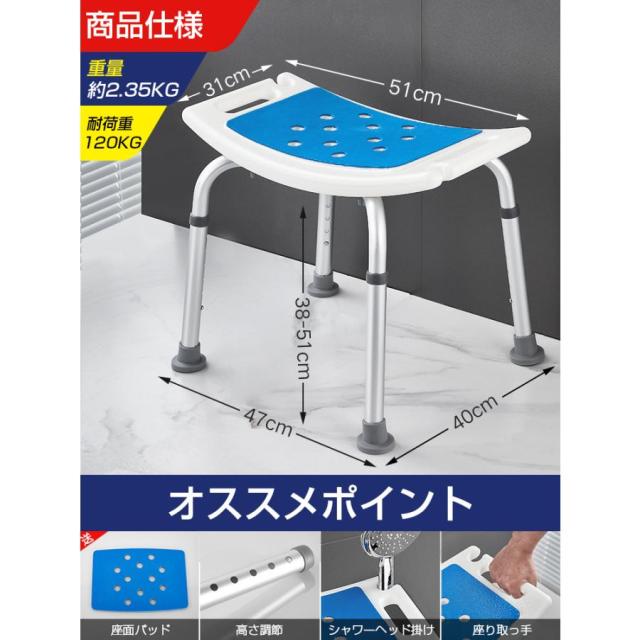 シャワーチェア 介護 150Kg 椅子 風呂 肘 取り外し 介護用品 シャワーチェアー 高さ調節 高齢者 お風呂イス 40センチ 耐荷重150kg 誕生日 クリスマス プレゼント