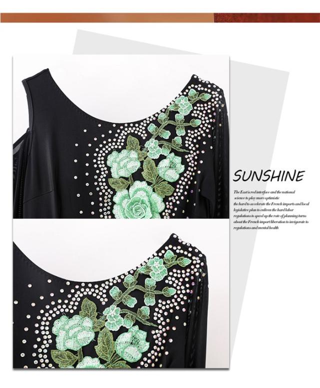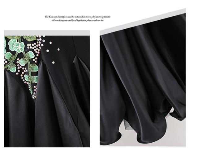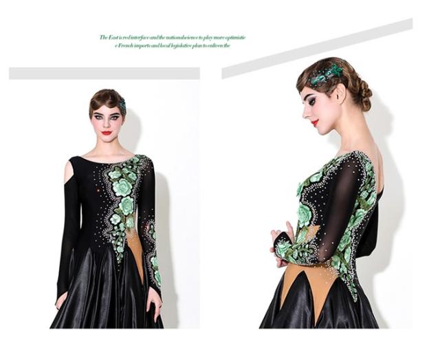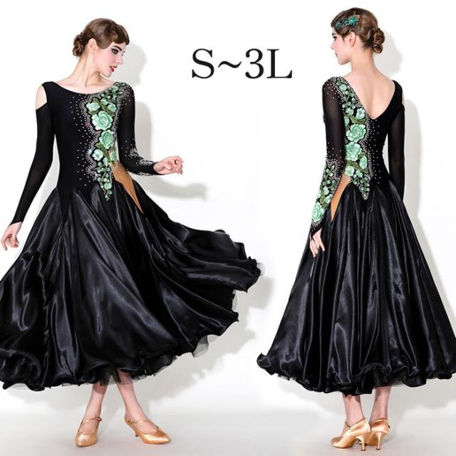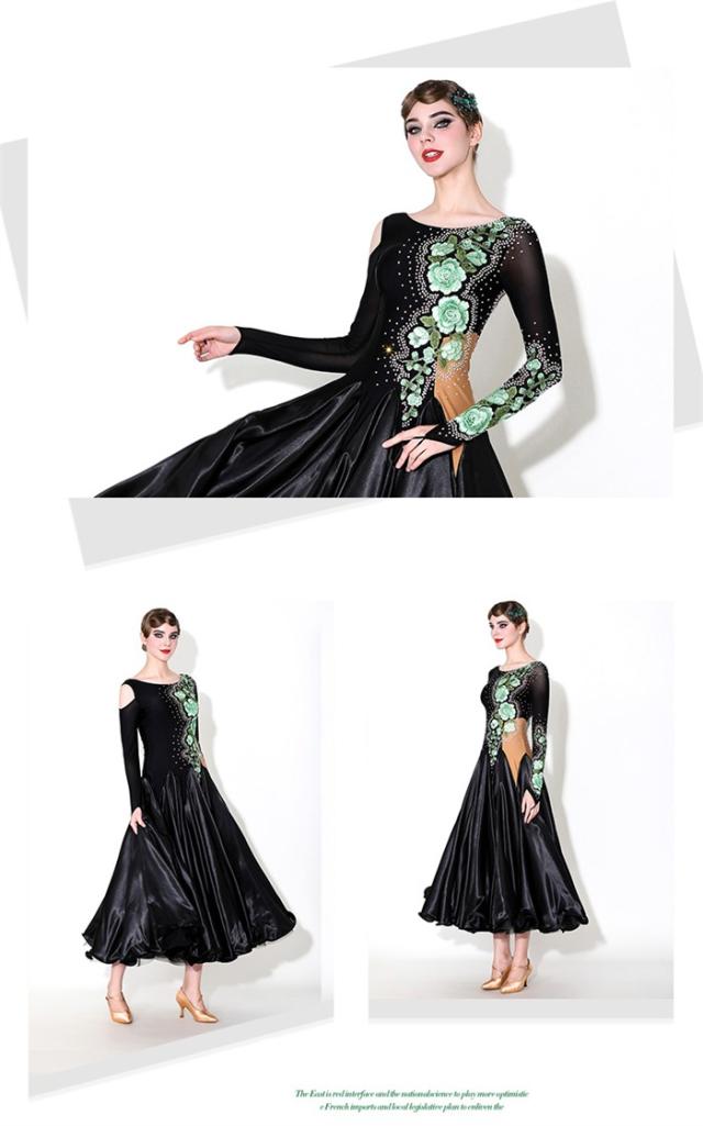 社交ダンス ドレス ロングドレス モダンドレス グリーン ブラック 黒 社交ダンス衣装 大きい裾 モダン スタンダード ワルツ ワンピース ダンス衣装 ステージ衣装 パーティー 発表会 競技用 コンクール 練習着 レッスン 舞台用 演奏会 dl550d7d7x7 dl550d7