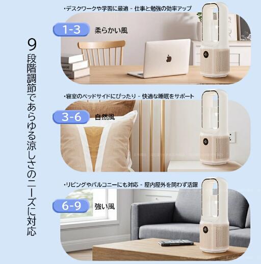 <9段階の冷却調整>: 各種シーンに対応する9段階の冰爽調節機能を搭載。寝室、リビング、デスク、寮など幅広い場所で使用可能です。