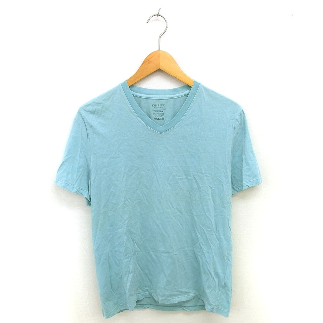 【中古】エディフィス EDIFICE Tシャツ カットソー Vネック 無地 シンプル 半袖 46 ミントグリーン /TT メンズ
