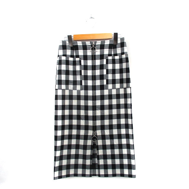 【中古】ノーブル NOBLE タイトスカート ロング フロントジップ ギンガムチェック 38 ブラック 黒 /KT10 レディース