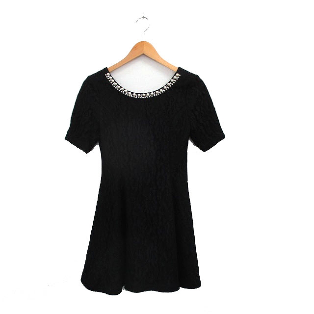 【中古】エミリアウィズ EmiriaWiz 総レース ワンピース 半袖 ミニ ビジュー M ブラック 黒 /KT28 レディース