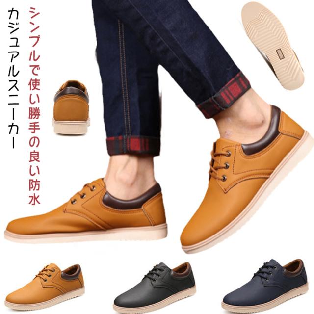 スニーカー メンズ 防水 ローカット レースアップ 防水シューズ PU革 靴 カジュアルシューズ ビジネススニーカー 紐靴 紳士靴 軽量 おしゃれ 疲れない 紐靴
