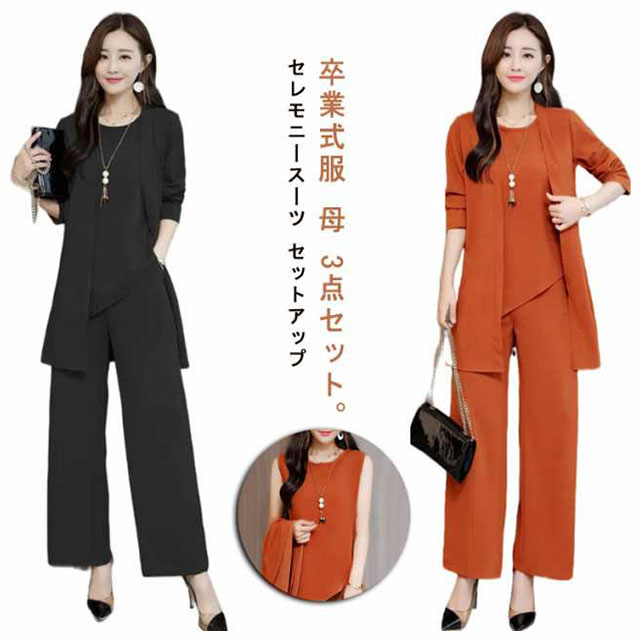 卒業式 服 母 レディース セットアップ セレモニースーツ 卒園式 服装 ママ 入学式 入園式 発表会 結婚式 記念日 パンツスーツ スーツジャケット ママスーツ 3点セット 七五三 お宮参り 通勤 OL 20代 30代 40代 50代 黒 ブラック 上下セット フォーマル 大きいサイズ S-5XL