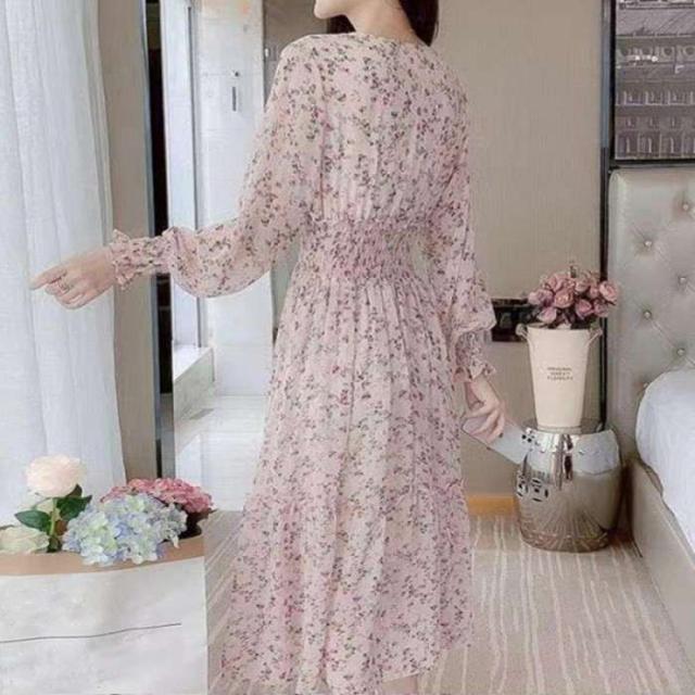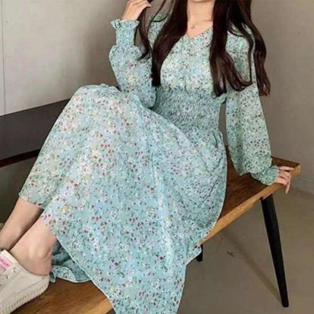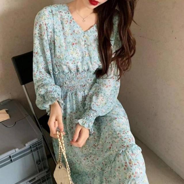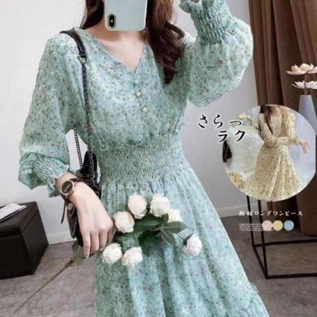 上品 Vネック 長袖リゾートワンピース レジャー旅行 ウエストマーク Aラインワンピー春夏秋 きれいめワンピ 体型カバー