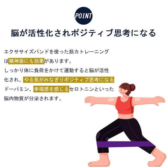 【全身筋トレーニング】トレーニングチューブはプロガイドが付き、足、腕、胸、腹、お尻などトレーニングの12種類練習図を示しています。