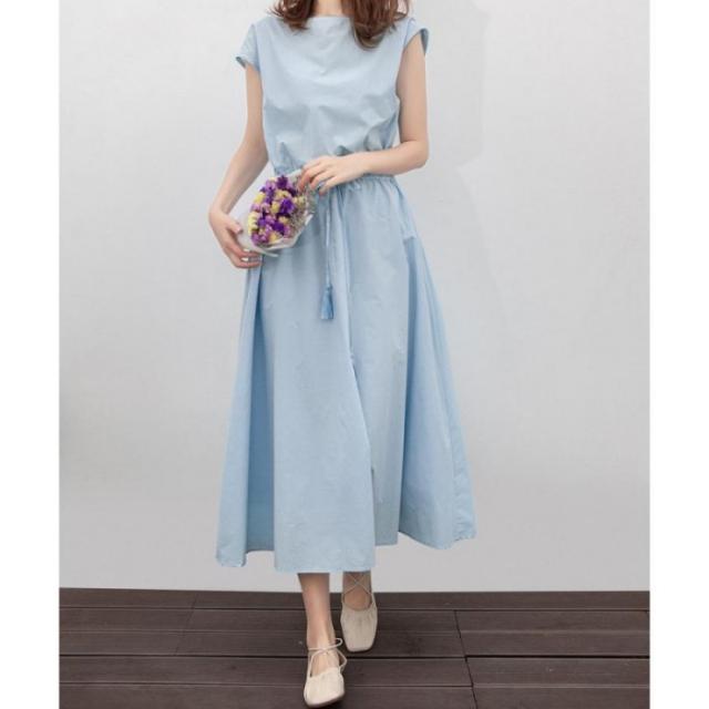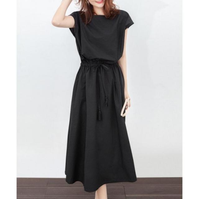ウエストマーク ワンピース ゆったり ロングワンピース 春夏 ナチュラルワンピース 半袖 韓国