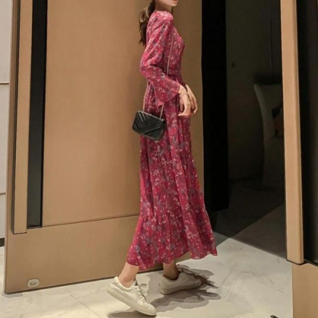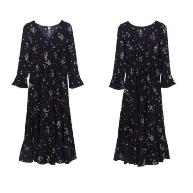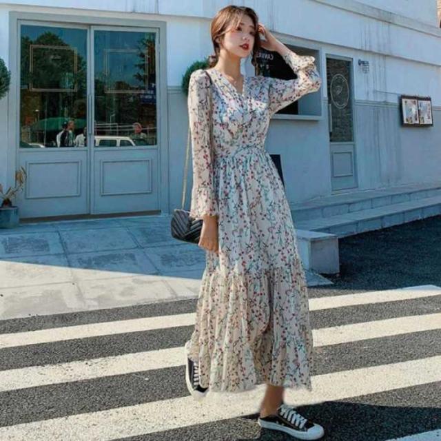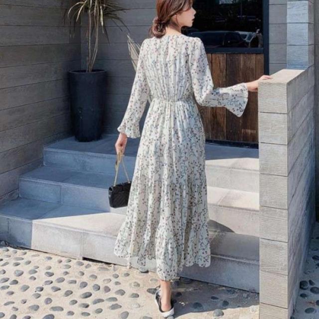 爽やかな花柄長袖ロングワンピースが新登場