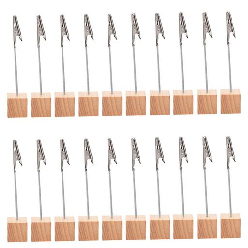 メモ クリップ スワイヤー 木製 カード ホルダー 卓上 20個セット スタンド フォトカード ホルダー 名刺立て プライスカード 木 スクエアタイプ (20)