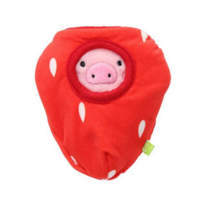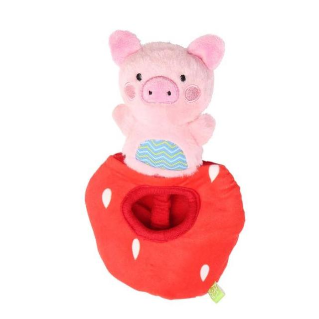 商品詳細:手のひらサイズのキュートなブタさんを、イチゴの形をした本体から出し入れできるおもちゃです。柔らかいおもちゃが大好きなワンちゃんにおすすめです。ぬいぐるみと本体はゴムで繋がっています。本体にはカサカサ鳴る素材、ぬいぐるみにはスクウィーカーが入っていて、音でも楽しめるおもちゃになっています。おやつを隠すこともできるので、いろいろな遊び方ができます。 生産国:中国 素材・材質:ポリエステル、プラスチック、ゴム 商品サイズ:10×4×13cm 重量:35g