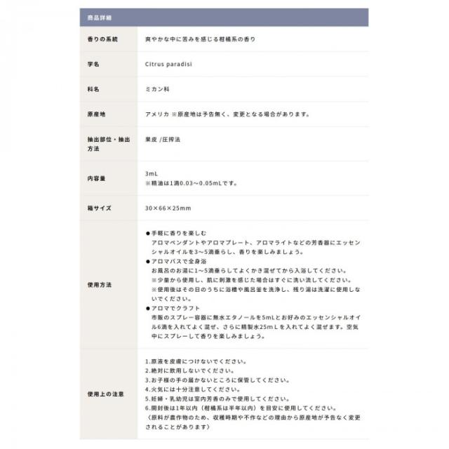 商品概要:グレープフルーツのミニエッセンシャルオイル