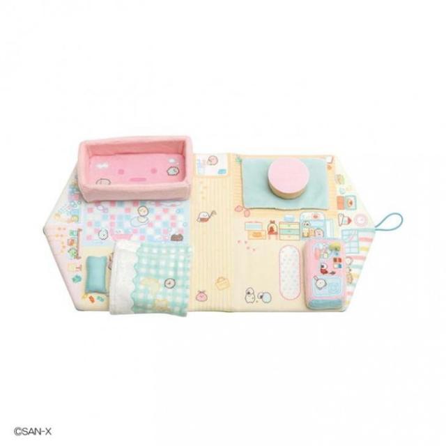 | すみっコぐらしの世界をもう一歩地味リアル〜に楽しめちゃう大人気「すみコレ」のNEWシリーズが新登場。すみっコたちはお料理したりおふろに入ったりおやすみしたり毎日なにしてるのかな?そんな地味リアルなおうち生活をイメージして遊べるすてきなワンルームができました。すみっコワンルームぬいぐるみです。てのりぬいぐるみと組み合わせて遊べるおふろ・リビング・おふとん・キッチンが付いているよ。 ボタンでとめるとおうち型になるので、インテリアとしてもかわいい。すみっコたちとおうち生活を楽しもう。 |