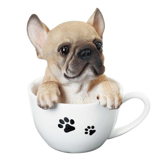 商品詳細:カップに入ったフレンチ・ブルドッグのオーナメント。お部屋の雰囲気を可愛らしくします。 生産国:中国 素材・材質:レジン 商品サイズ:W130×H145×D115mm