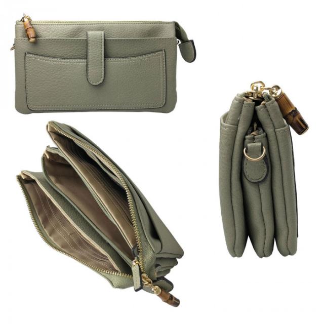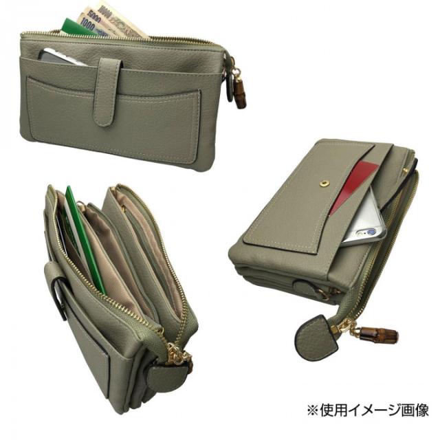 Pisoraro(ピソラロ) 3WAY バンブーウォレットバッグ お財布ポシェット グリーン PR119 |b03