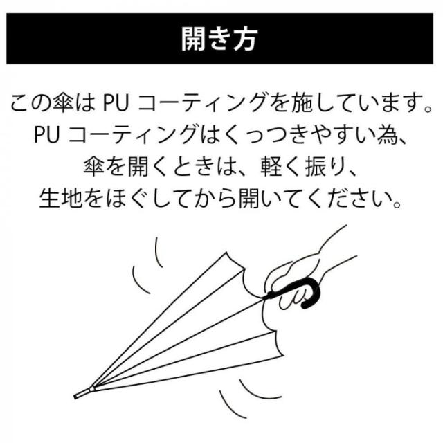 | グラスファイバー骨のため折れにくいです。晴の日も雨の日も使えます。ジャンプ傘で便利です。 ※製品には尖ったところがあります。 ※取扱いの際は周囲の安全を確認してご使用下さい。 ※強風の時は破損する恐れがありますので注意してご使用下さい。 ※ごく稀に、製品がにおうものが混じっている場合がございますが、こちらは生地や裏面のコーティングなど、製品自体のにおいなので安心してご使用ください。 ※製品のにおいがきつい場合、陰干しして頂けますと軽減することができます。 ※商品本体裏側の「品質表示ラベル」に基づいてのご使用・管理をお願い致します。 ※使用後は日陰干ししてから保管して下さい。 ※実物に近い状態になるよう努力しておりますが、光の具合やモニターの環境によって商品の色が実物と異なって見える場合がございますのでご了承ください。 |