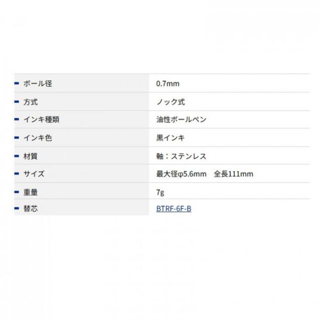 商品詳細:スリムで持ち運びに便利なボールペンです。ビジネスからプライベートまで、幅広くご使用いただけます。 生産国:日本