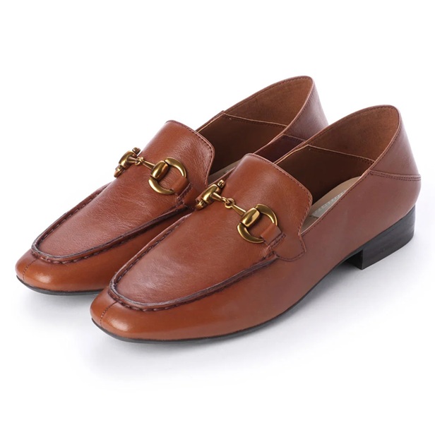 本革 ビットローファーバブーシュ 定番 フラット 2e カジュアル 大人女子 革 レザーシューズ ビット付 シンプル チャンキーヒール ブラック ブラウン