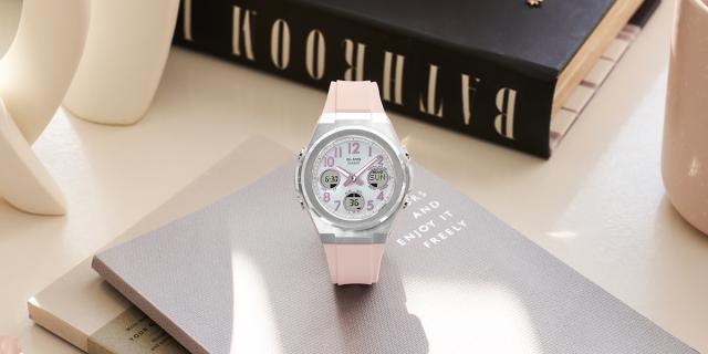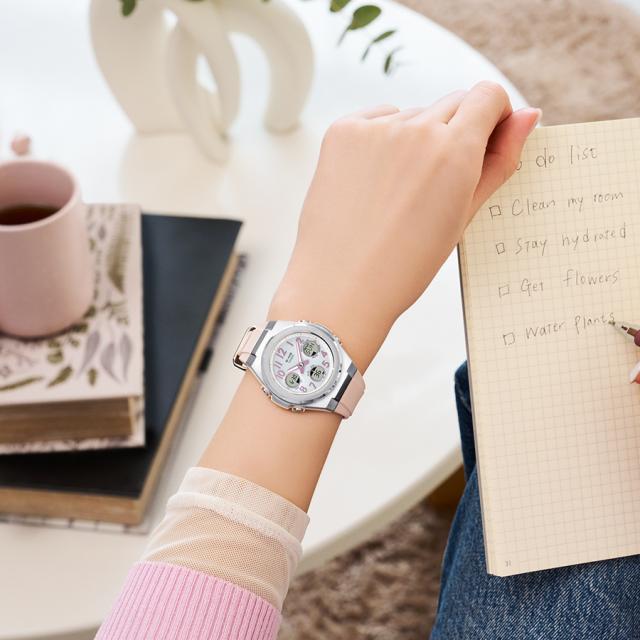 アクティブで洗練された女性に向けたBABY-G G-MS(ジーミズ )。視認性の良いアラビック数字をインデックスに取り入れたモデルに、上品で着けやすいニュアンスカラー2色が追加されました。