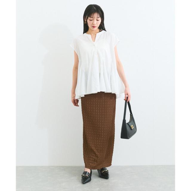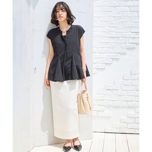 袖は、肩が少し隠れる丈感でカジュアルオフィススタイルも肌見せすぎず◎