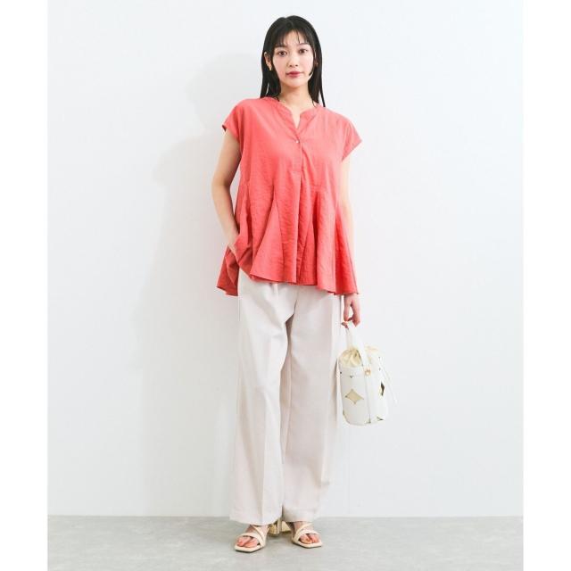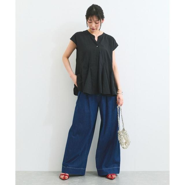デニムボトムやキャップでカジュアルにもキレイ目のパンツを合わせてリラックス感あるキレイ目スタイルにもなり、長い夏を乗り切る長く使える万能な1枚。