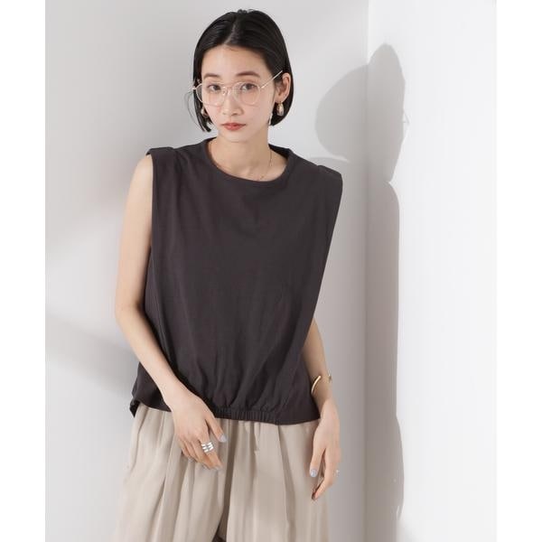 ドライタッチ天竺フロントギャザーヘムノースリーブトップス