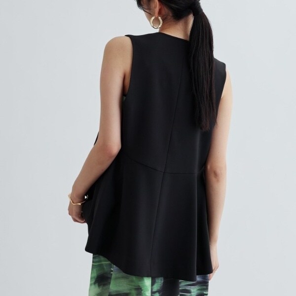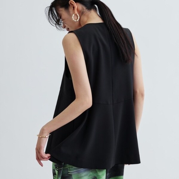 ペプラムの切替シルエットがバックスタイルにもほどよいアクセントを付けてくれるアイテムで、夏の着こなしにモードな印象をプラスしてくれます。