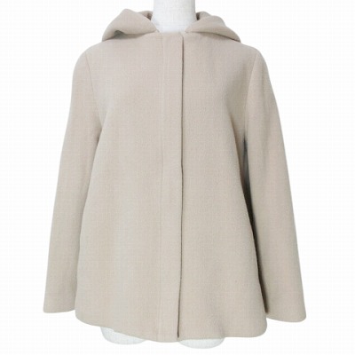 【中古】エフデ ef-de 19AW ショート コート 2way フード ノーカラー ジップアップ ウール 7 S相当 ベージュ X