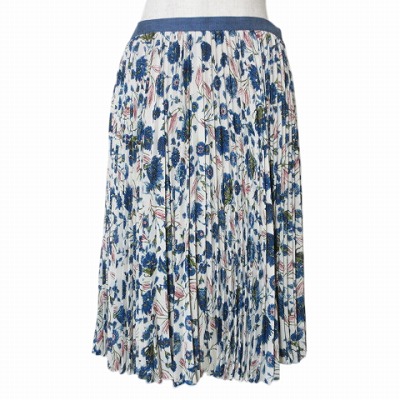 【中古】ロイスクレヨン Lois CRAYON プリーツスカート ひざ丈 11004001 花柄 M 白 青 X レディース