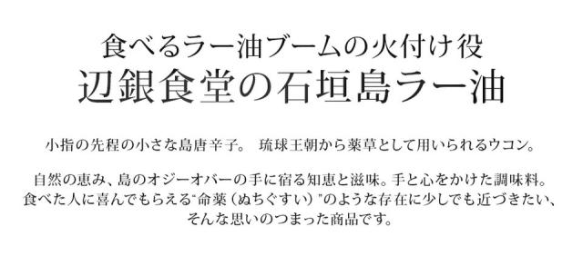 辺銀食堂の石垣島ラー油 3本 送料込 他商品同梱不可 食べるラー油 石垣島 辺銀食堂 ペンギン食堂 ラー油 辣油