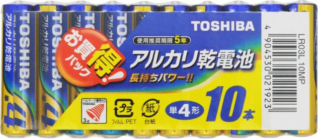 TOSHIBA アルカリ単4電池10本パック LR03L10MP