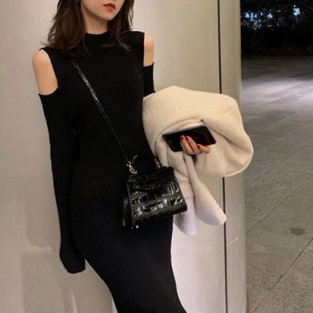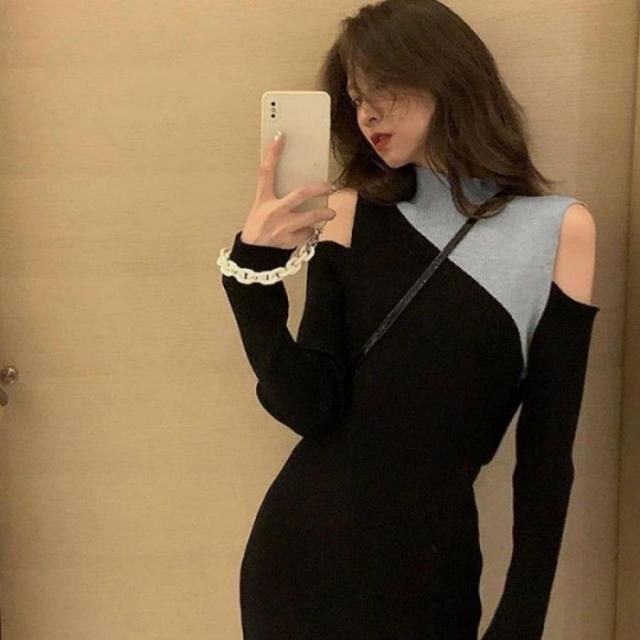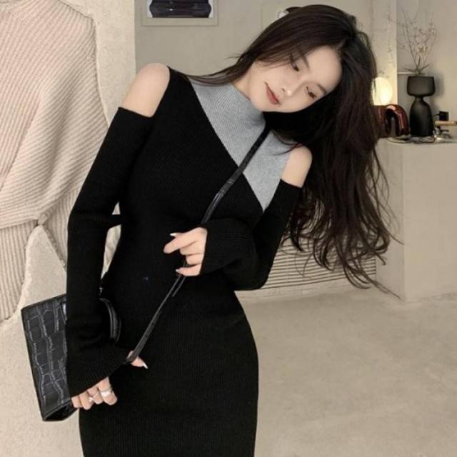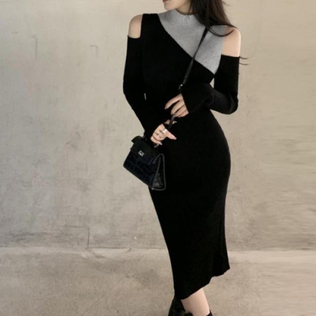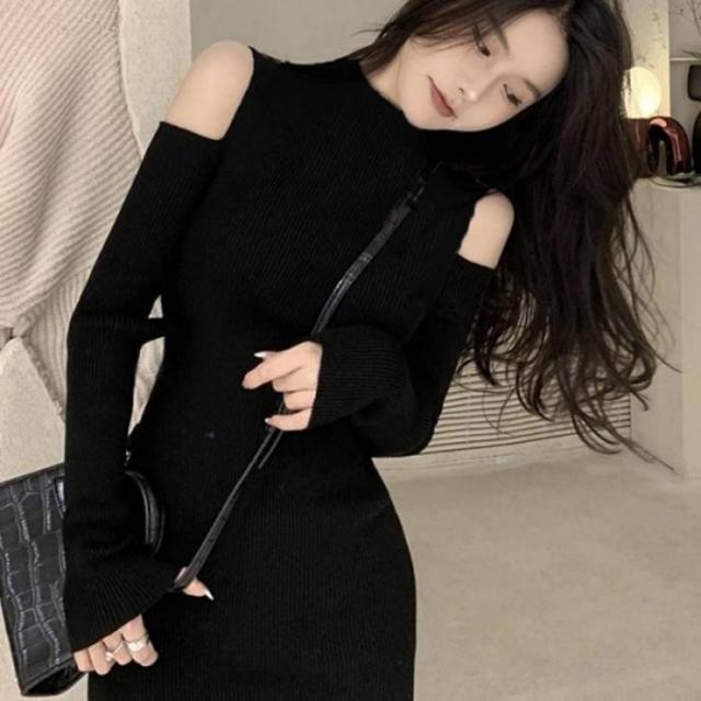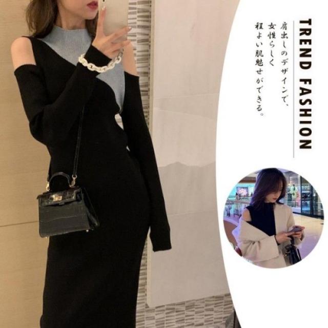 ニットワンピース 肩出し 長袖レディース